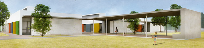Concept design contest proposal of a school including 18 classrooms for Pre-school, 18 for Primary Education and sports facilities.